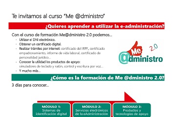 Usuarios con discapacidad, familiares y otros interesados podrán apuntarse a la formación para aprender a utilizar la identidad digital de las personas a través del DNI Electrónico, Certificado electrónico FNMT-RCM y Sistema CL@ve. Además, se enseña cómo utilizar los diversos servicios electrónicos y también el conocimiento de diferentes tecnologías de apoyo, como por ejemplo teclados en pantalla.