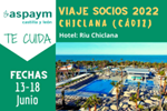 ASPAYM Castilla y León organiza su viaje para 2022 a Chiclana (Cádiz) del 13 al 18 de Junio en el Hotel Riu Chiclana. Inscripciones del 11 al 29 de abril: ? Presencialmente en el departamento de Atención al Socio de…