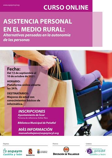 ASPAYM Castilla y León y PREDIF Castilla y León finalizan los cursos del proyecto ‘Asistencia Personal en el medio rural: alternativas pensadas en la autonomía de las personas’, que han desarrollado en ocho municipios de menos de 20.000 habitantes de la provincia gracias a la financiación de la Diputación de Valladolid. La última formación se celebrará del 13 de septiembre al 10 de octubre de 2021 en Íscar y Peñafiel, en este último con una nueva edición.