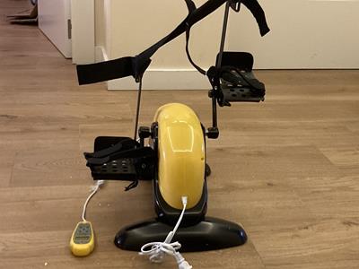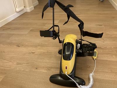 Se vende debido a que al recibir dicho producto me di cuenta que no era compatible para mí ya que soy una persona tetrapléjica y necesito un sistema de pedaleo más complejo. Sirve para ejercitar tanto piernas como brazos. El producto está impecable y nuevo ya que solo lo usé durante 1 minuto que me bastó para darme cuenta que no era compatible para mí. El precio de compra fue de 330€, ahora lo pongo a la venta por 180€»