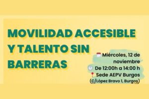 ASPAYM Castilla y León colaborar en la jornada “Movilidad accesible y talento sin barreras”, organizada por la Asociación de Empresarios del Polígono de Villalonquéjar (AEPV Burgos). El encuentro se celebrará el miércoles 12 de noviembre, de 12:00 a 14:00 horas,…